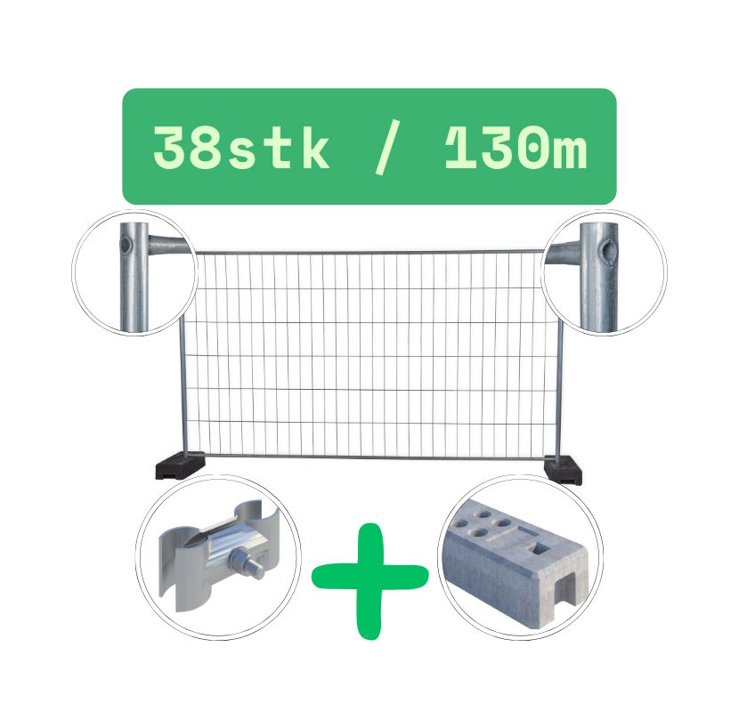 Bauzaun Rohr in Rohr Gepresst Light 345x200cm | Mobilzaun | 130m | 38 Elemente | Neu
