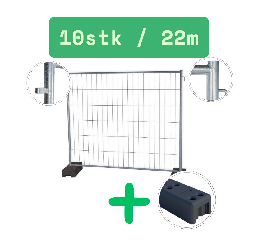 Bauzaun kurz 220x200cm | Mobilzaun | 22m | 10 Elemente | Neu| Gummi Fuß 26kg